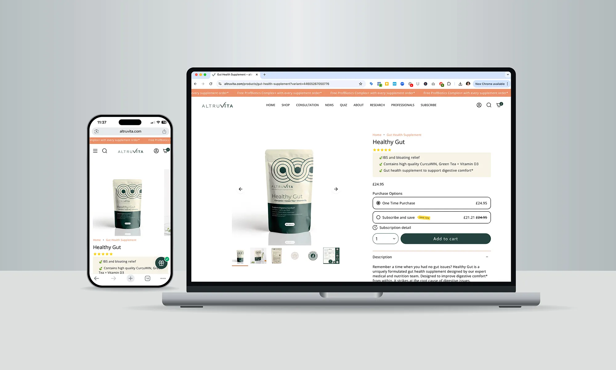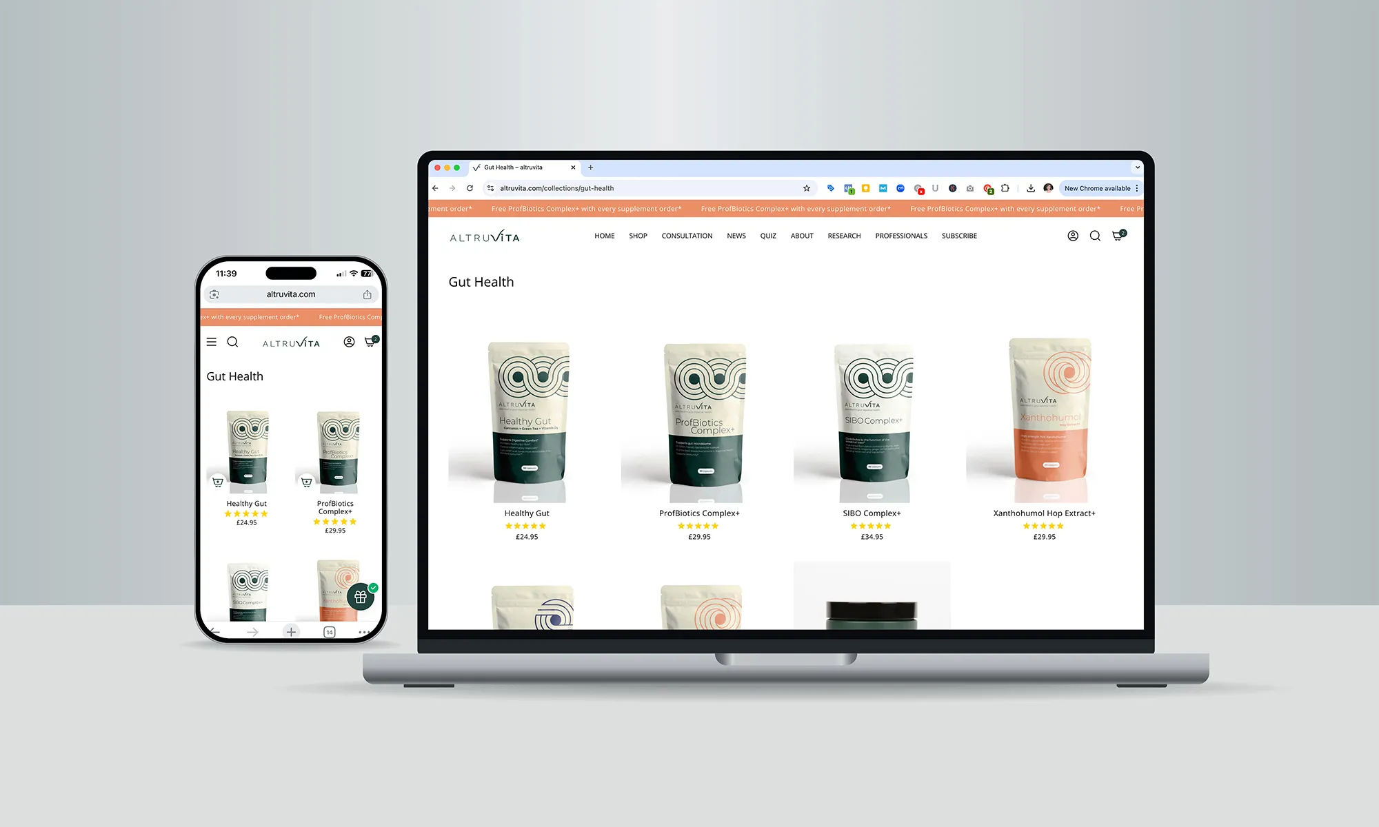 Altruvita were already using Shopify but were keen to redevelop their website design, using a new theme and ensuring the Shopify website worked seamlessly on mobile.