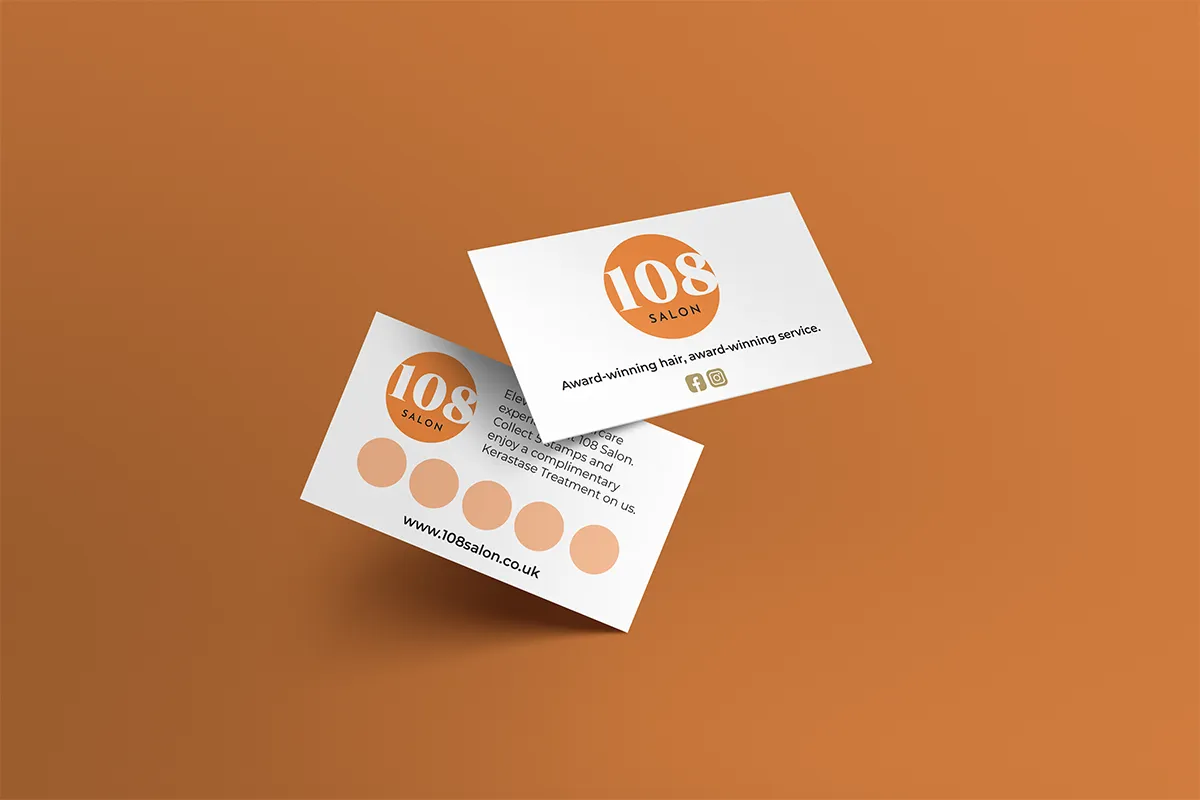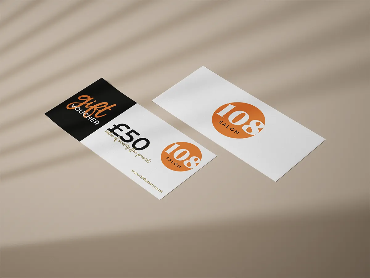 More recently, following a subtle name change, 108 Salon approached us again for a comprehensive brand refresh, a new website design and a suite of printed material such as signage, loyalty cards and gift vouchers to match.